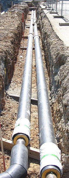 Die Wärme gelangt durch erdverlegte Fernleitungen zu den Häusern.